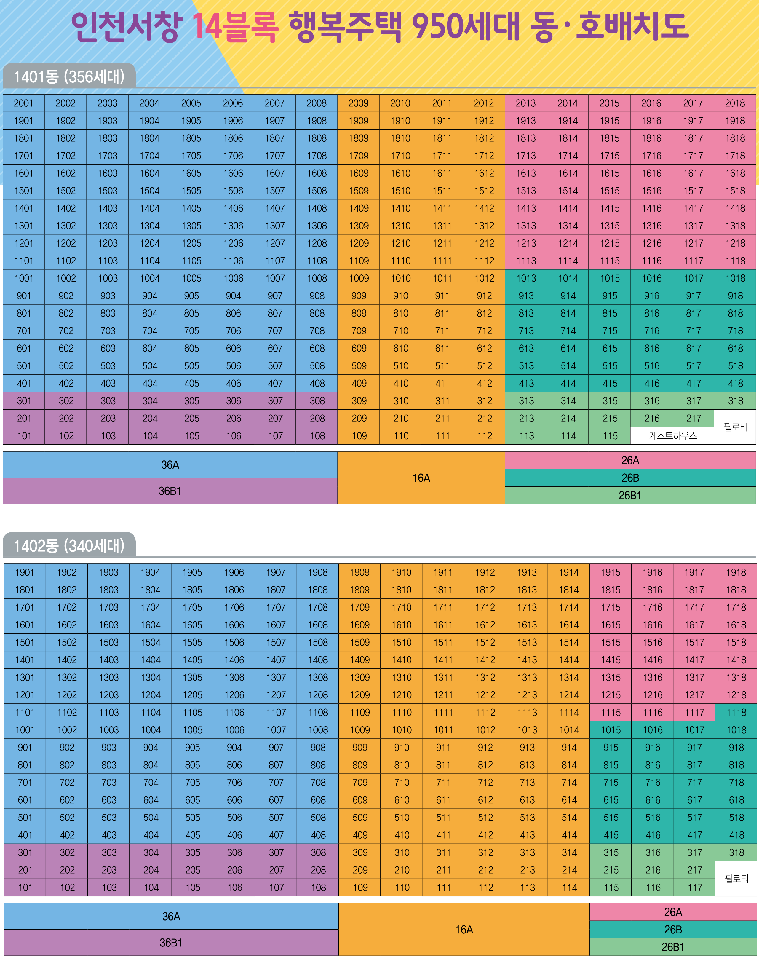 LH공사에서 공급하는 인천서창2지구 14블록 행복주택 인천서창 LH14단지는 인천광역시 남동구 운연천로 9 [㉾21611] (舊, 지번주소: 인천광역시 남동구 서창동 744번지)에 위치해 있는 지역난방 방식의 복도식 아파트 단지로, 2020년 02월에 입주가 시작되었습니다. 한국토지주택공사에서 공급하는 인천서창 LH14단지 아파트는 12층 ~ 20층 규모의 1401동 ~ 1403동 까지 3개동 중 전용면적 16㎡의 16A형 266세대와 26㎡의 26A형 95세대, 26B형 71세대와 26B1형 24세대, 36㎡의 36A형 440세대와 36B1형 54세대 등 총 950세대로 구성되어 있습니다.