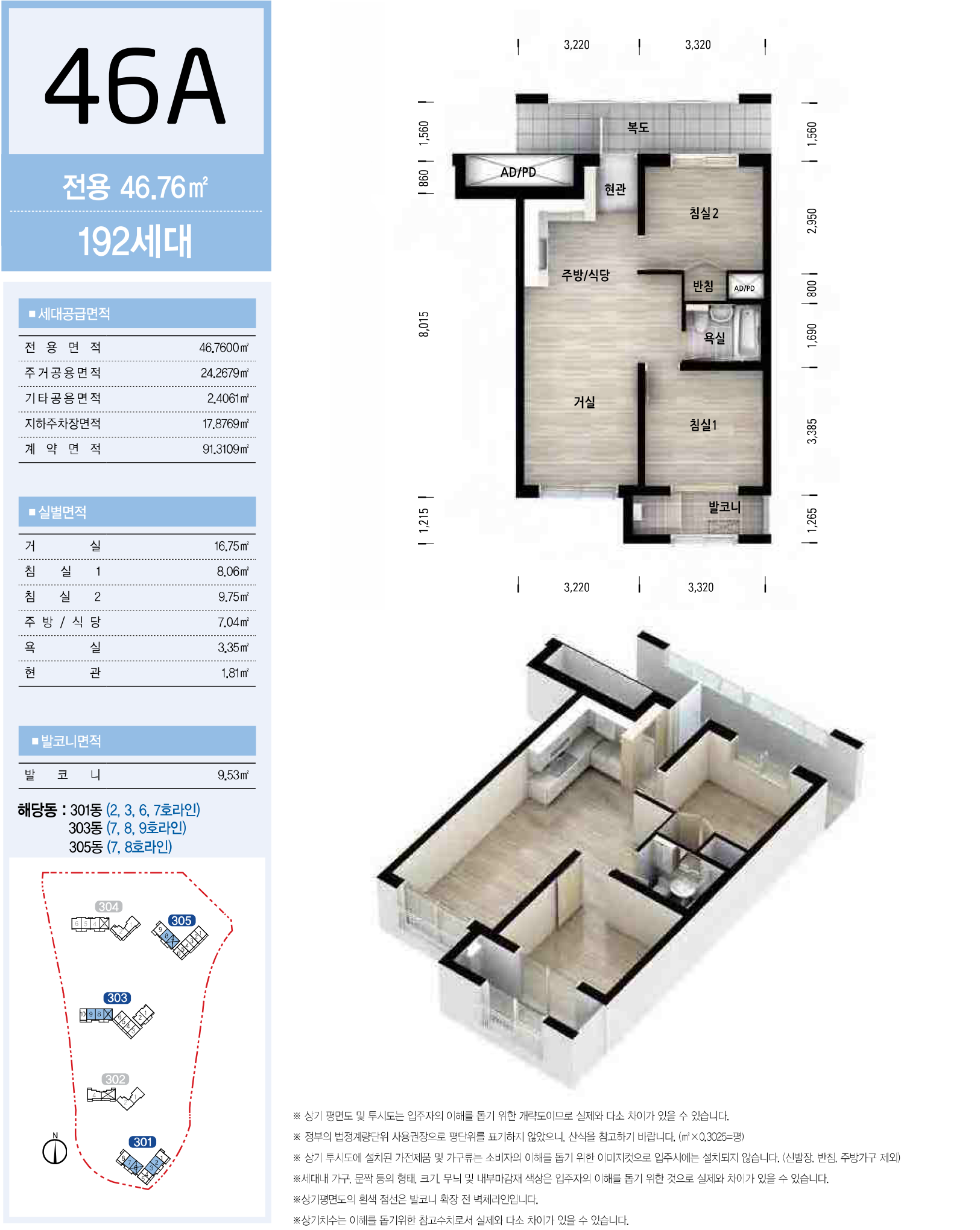 서울서초보금자리주택지구 A3블록 LH 서초3단지 아파트 국민임대주택 전용면적 46㎡의 46A형은 서비스 면적으로 제공되는 주거공용 면적을 포함하여 舊, 평형으로 환산하면 약 21.486평으로, 침실 2개와 주방/식당과 거실, 침실 2 반침과 욕실, 실외기 설치 공간이 내부에 있는 발코니 등으로 구성되어 있는 2베이 구조입니다.