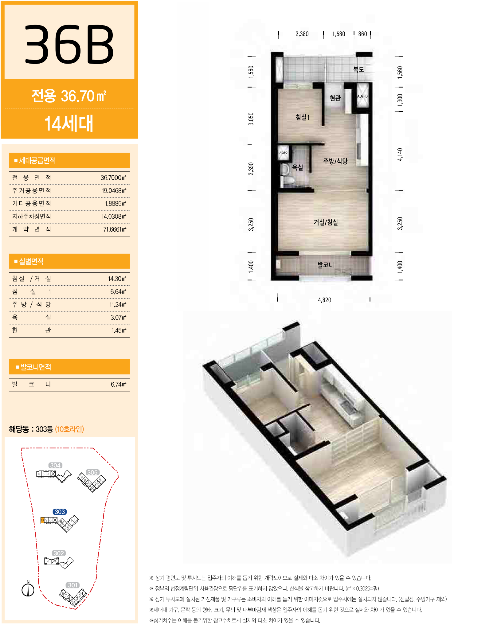 서울서초보금자리주택지구 A3블록 LH 서초3단지 아파트 국민임대주택 전용면적 36㎡의 36B형은 서비스 면적으로 제공되는 주거공용 면적을 포함하여 舊, 평형으로 환산하면 약 16.863평으로, 침실 1개 외에 주방/식당과 거실/침실이 미닫이 문으로 분리 되어 있고, 욕실과 실외기 설치 공간이 내부에 있는 발코니 등으로 구성되어 있는 1베이 구조입니다.
