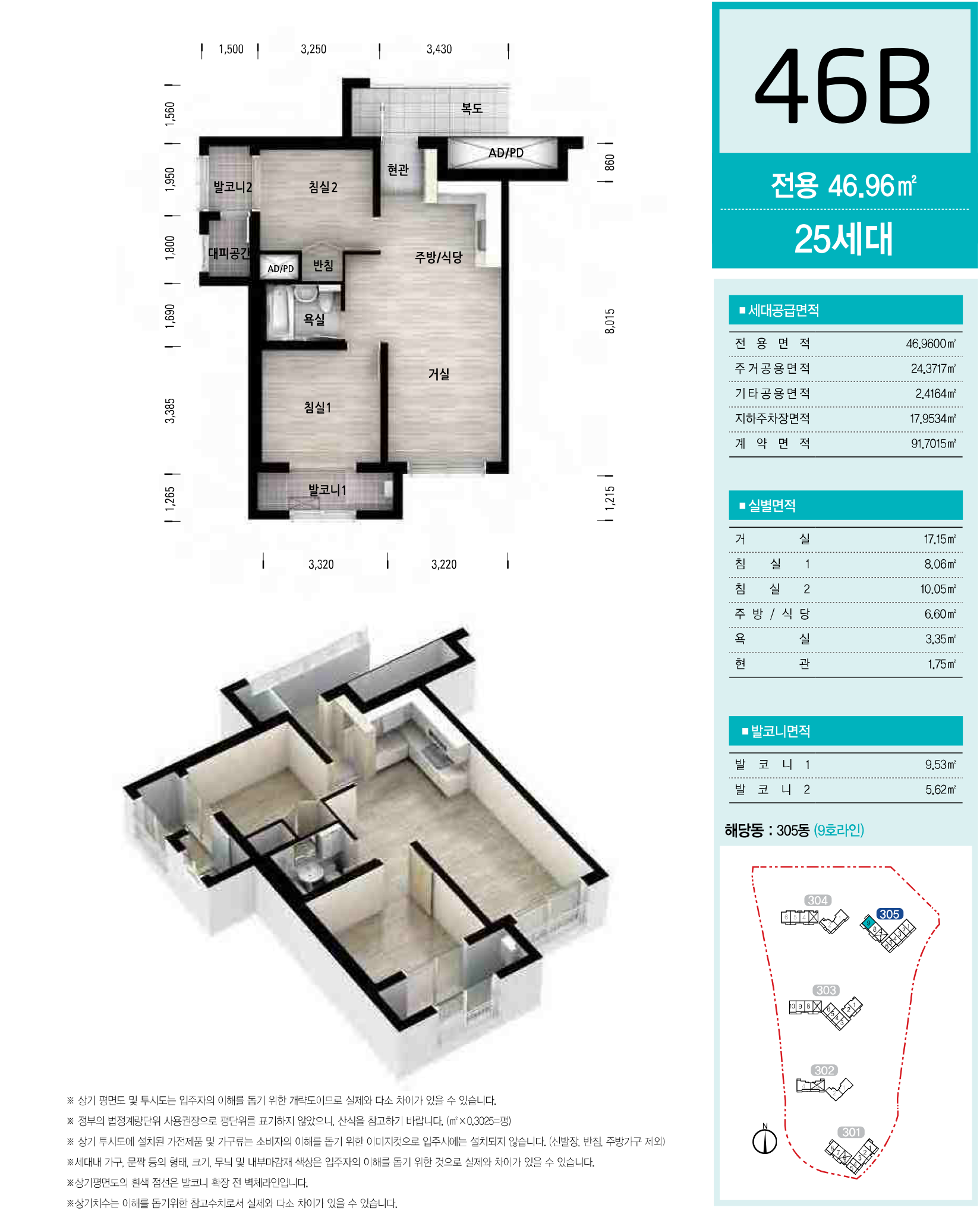 서울서초보금자리주택지구 A3블록 LH 서초3단지 아파트 국민임대주택 전용면적 46㎡의 46B형은 서비스 면적으로 제공되는 주거공용 면적에 추가 발코니 면적을 포함하여 舊, 평형으로 환산하면 약 23.278평으로, 침실 2개와 주방/식당과 거실, 침실 2 반침과 욕실, 실외기 설치 공간이 내부에 있는 발코니 2개와 대피공간 등으로 구성되어 있는 타워형 구조입니다.