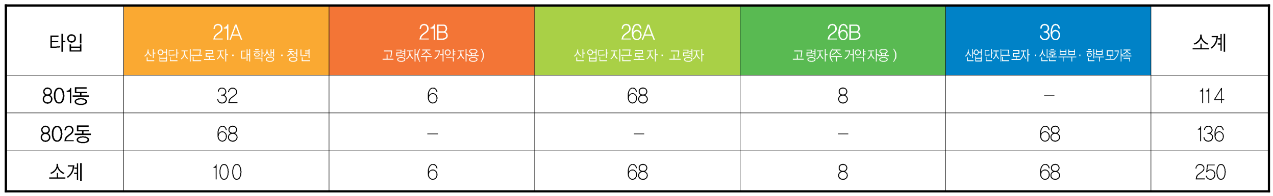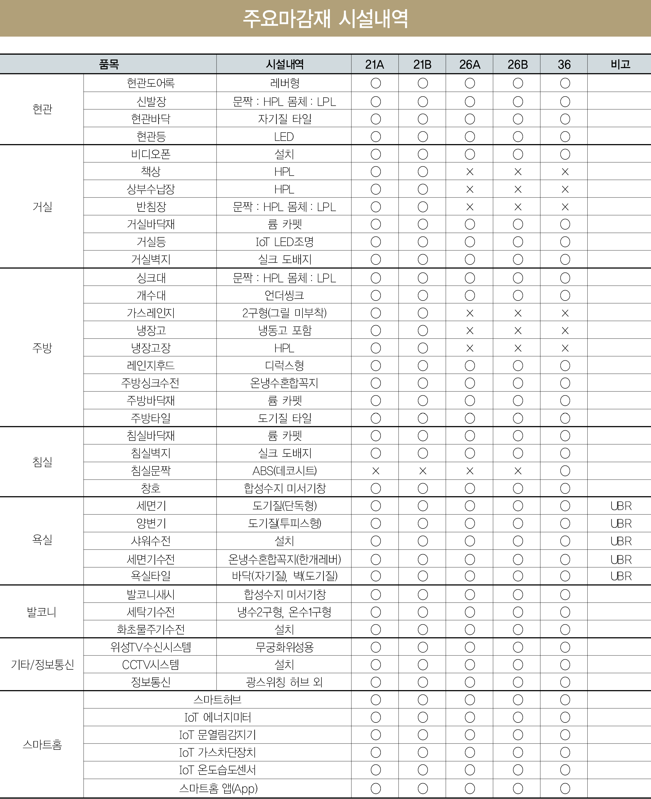 이와 함께, 주거약자용 주택으로 고령자에게 8세대가 공급되는 26B형에는 「공공주택 업무처리지침」에 따라 현관과 욕실의 수직·수평 안전손잡이, 센서보행등과 응급 비상콜 및 동체감지기, 욕실의 높낮이 조절 좌식 샤워시설과 접이식 좌식의자, 미끄럼 방지 바닥재와 바닥단차 줄임,욕실 출입문 규격 확대 및 포켓도어 시공 등 세대내 편의시설을 설치하여 공급됩니다.