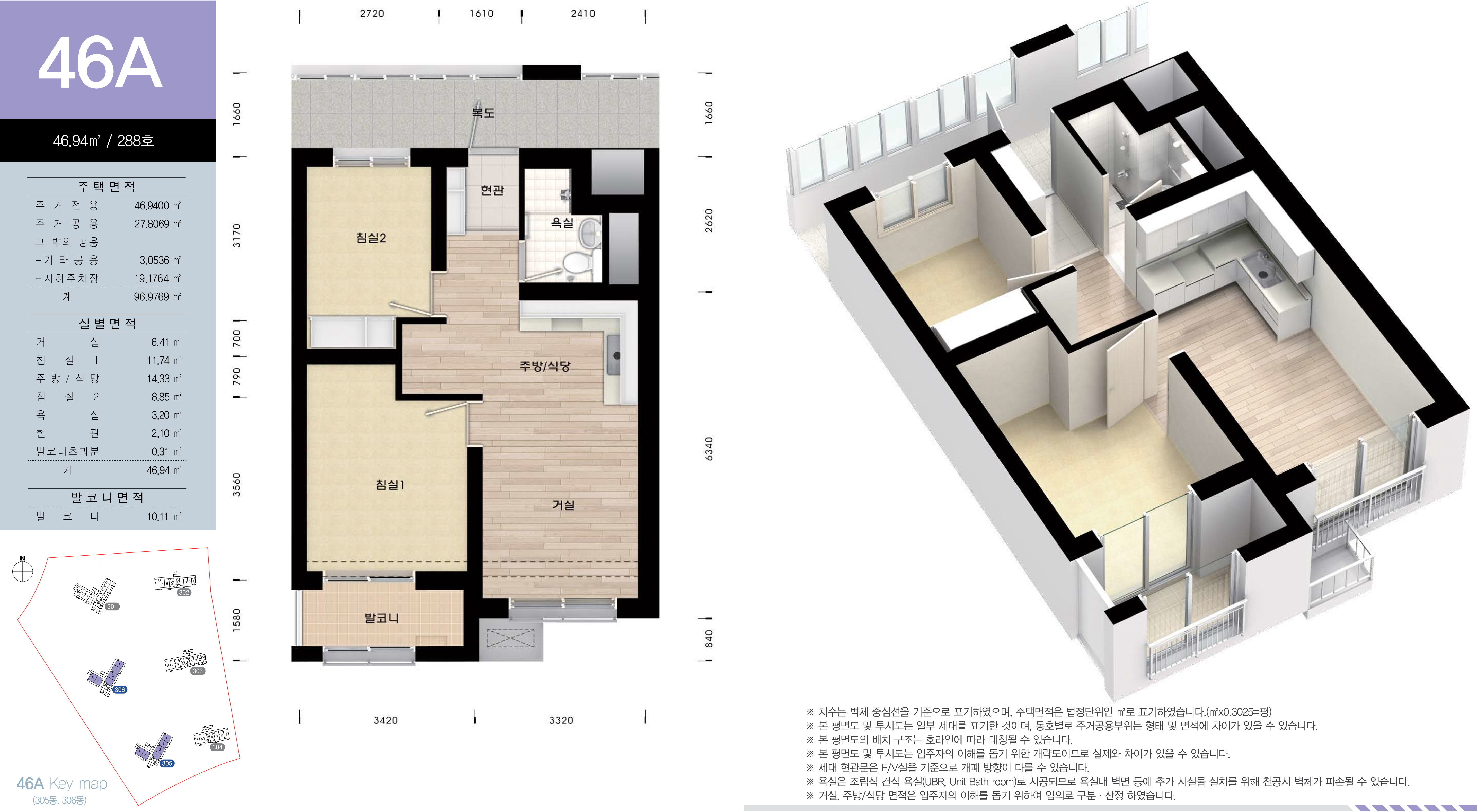 남양뉴타운 A3블록 국민임대주택 LH 화성남양 뉴타운 4단지 전용면적 46㎡의 46A형은 서비스 면적으로 제공되는 주거공용 면적을 포함하여 舊, 평형으로 환산하면 약 22.6110평으로, 침실 2개와 주방/식당과 거실, 욕실과 발코니 등으로 구성되어 있는 2베이 구조에 실외기 설치 공간은 거실 공간 외부에 위치해 있습니다.