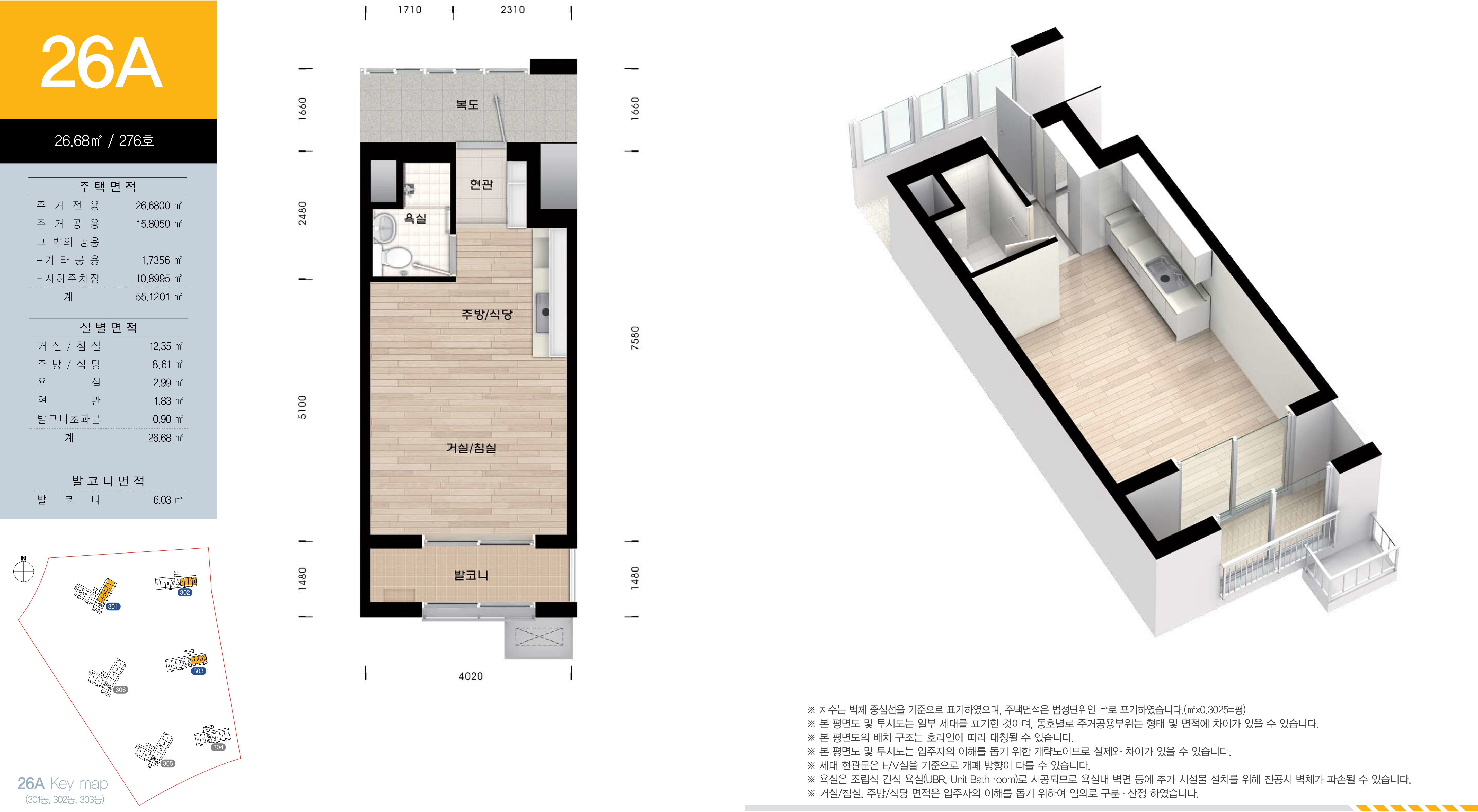 남양뉴타운 A3블록 국민임대주택 LH 화성남양 뉴타운 4단지 전용면적 26㎡의 26A형은 서비스 면적으로 제공되는 주거공용 면적을 포함하여 舊, 평형으로 환산하면 약 12.852평으로, 주방/식당과 거실/침실이 일체형으로 되어 있고, 욕실과 실외기 설치 공간이 외부에 있는 발코니 등으로 구성되어 있는 1베이 원룸형 구조 입니다.